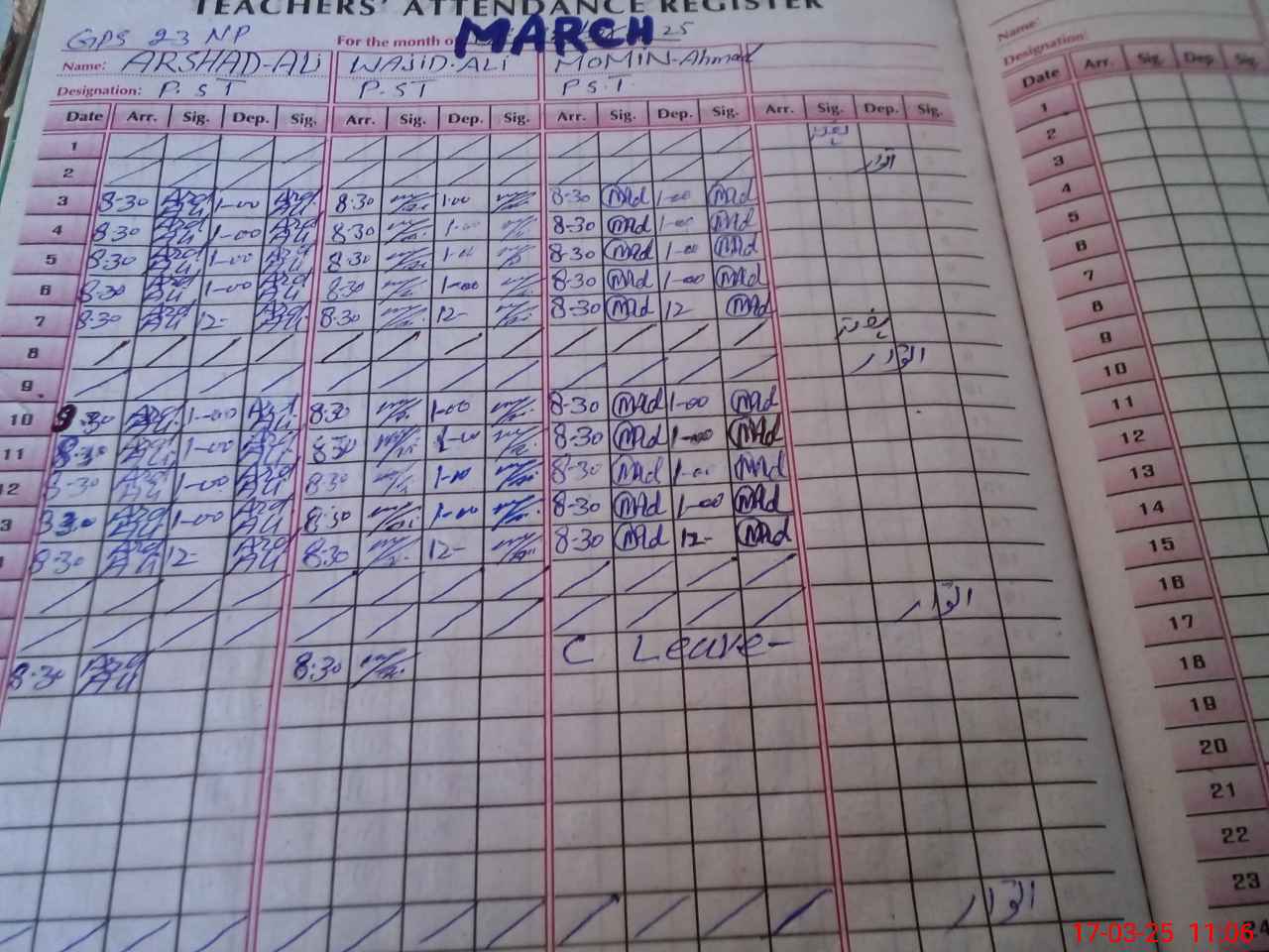 | Name: AR**** AL**** Designation: (School Headmaster's/Headmistress's) PST Phone/Cell Number: 03**** |