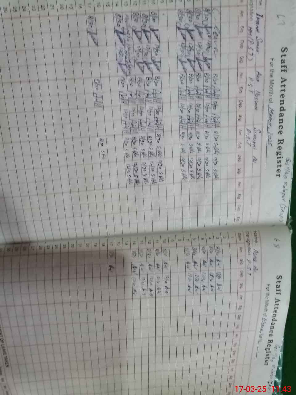 | CNIC | Full Name | Designation | R/C | Absence During Last Calender Month |