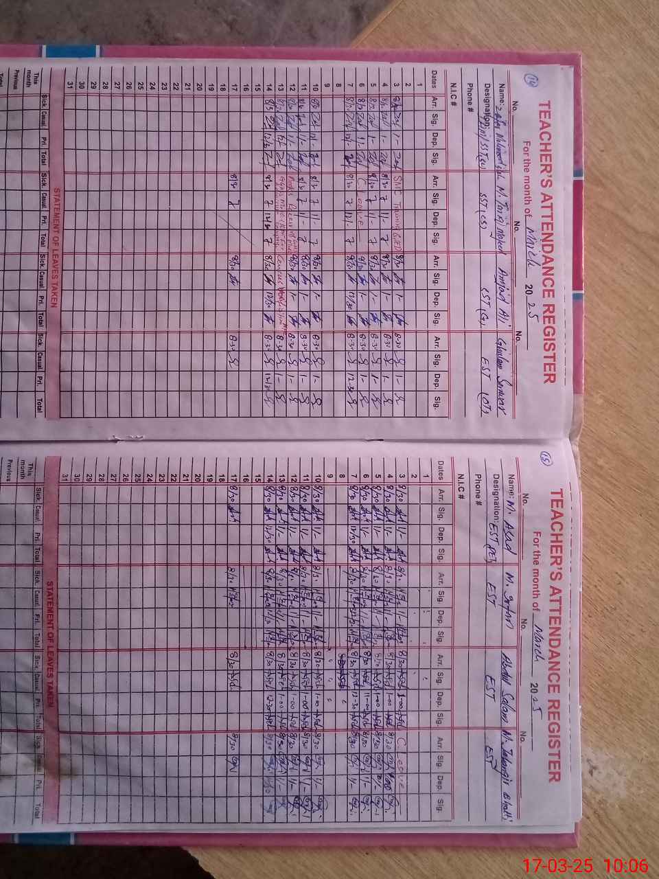 | Name: Mu**** Ta**** Ma**** Designation: (School Headmaster's/Headmistress's) HEADMASTER Phone/Cell Number: 03**** |