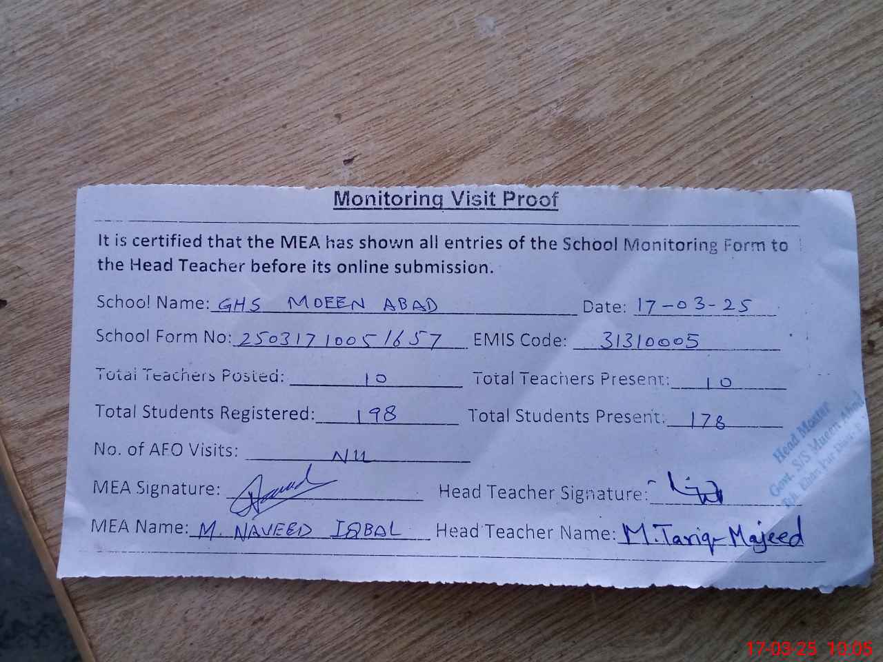 | EMIS Code: 31310005 | Name of School: GHS MOEEN ABAD | |||