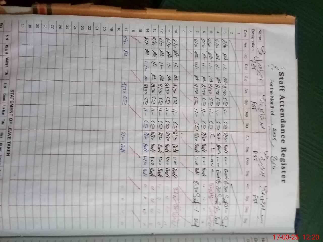 | 31**** | Sa**** UrRe**** | PST | Regular | 0 | 0 | 0 | 0 | 0 | 0 | 0 | 0 | 0 | Exam Duty |