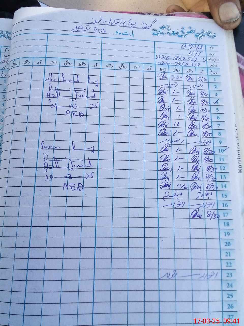 | Name: Mu**** Ak**** Al**** Designation: (School Headmaster's/Headmistress's) PST Phone/Cell Number: 03**** |