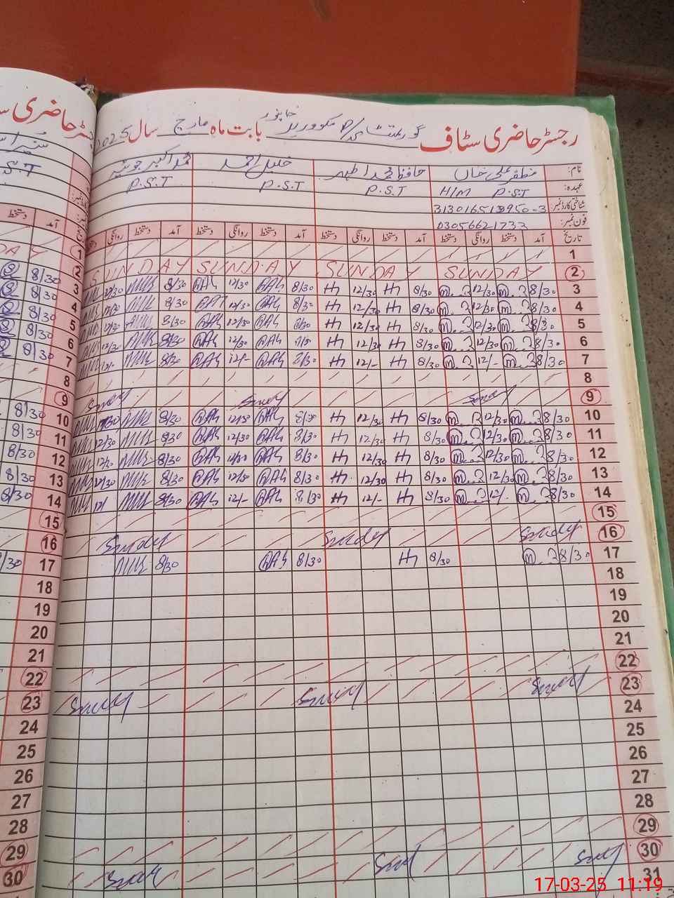 | Name: MU**** AL**** Designation: (School Headmaster's/Headmistress's) PST Phone/Cell Number: 03**** |