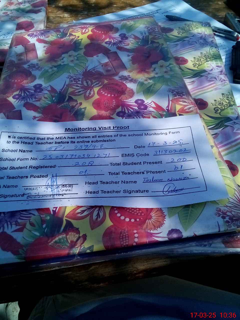 | EMIS Code: 31130202 | Name of School: GPS CHAK NO. 237/9-R NORTH | |||