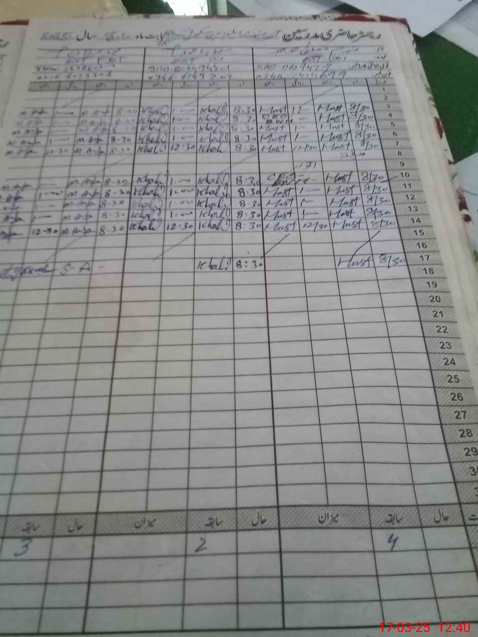 | 33**** | Mu**** Ar**** | 3 | 1 | 0 | 0 | 0 | 0 | 0 | 0 | 0 | 0 | 0 | Exam Duty |
