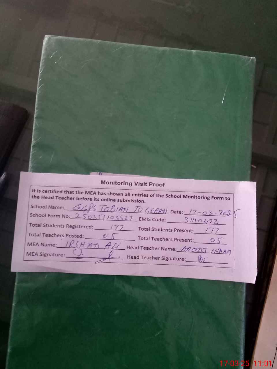 | EMIS Code: 31110473 | Name of School: GGPS TOBIAN TOGERAN | |||