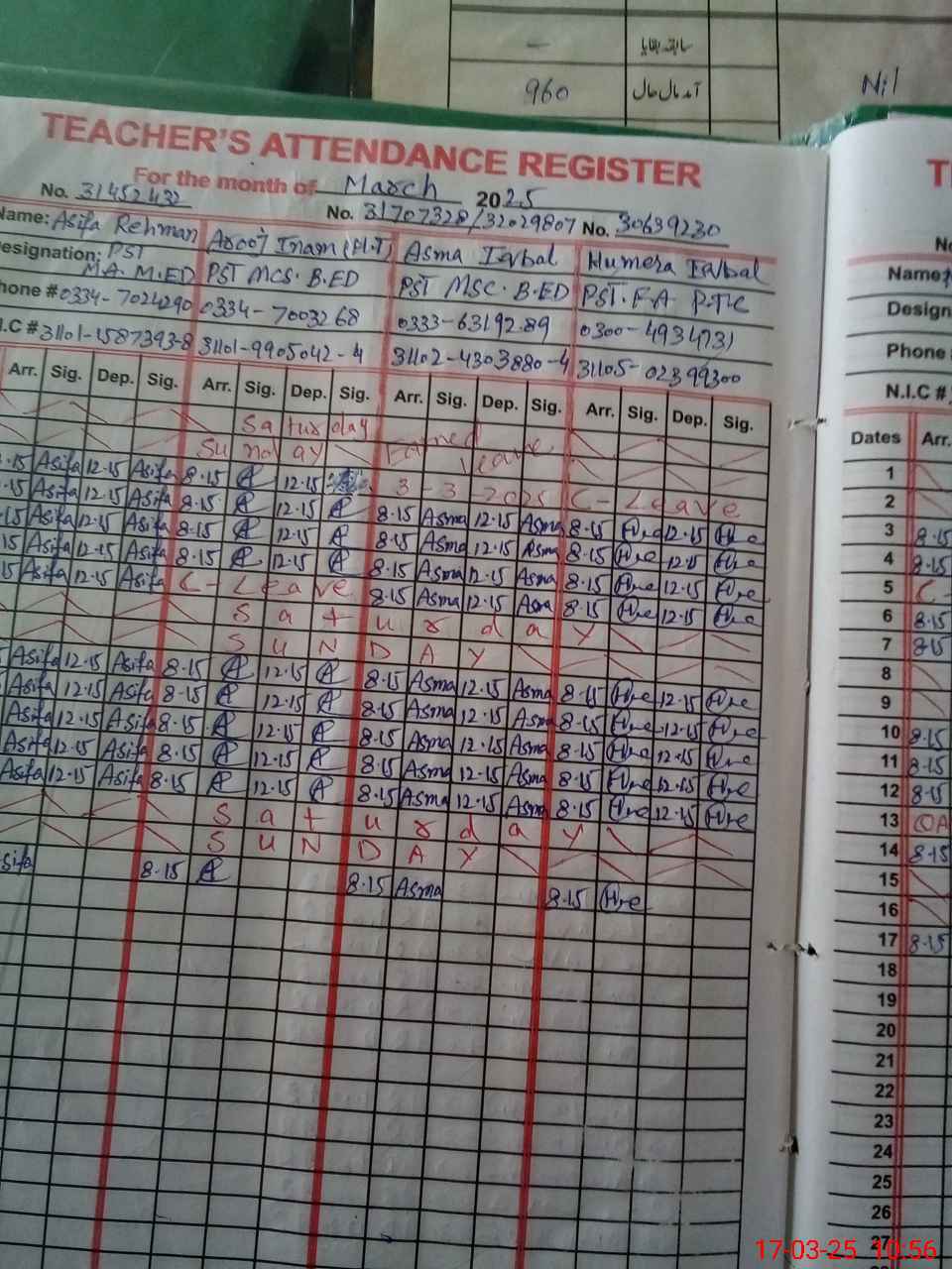 | Name: Ar**** In**** Designation: (School Headmaster's/Headmistress's) PST Phone/Cell Number: 03**** |