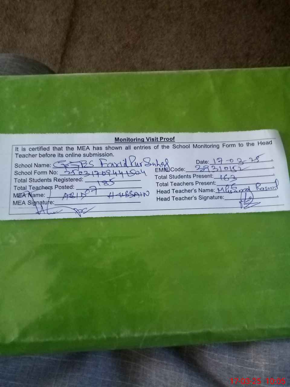 | EMIS Code: 39310152 | Name of School: GGES FARID PUR SUHAG | |||