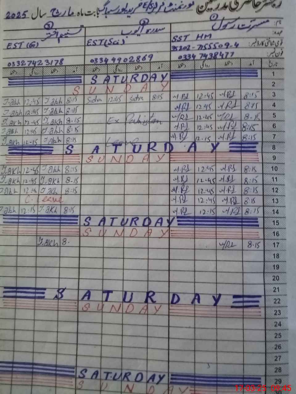 | Name: Mu**** Ra**** Ha**** Designation: (School Headmaster's/Headmistress's) SST Arts Phone/Cell Number: 03**** |