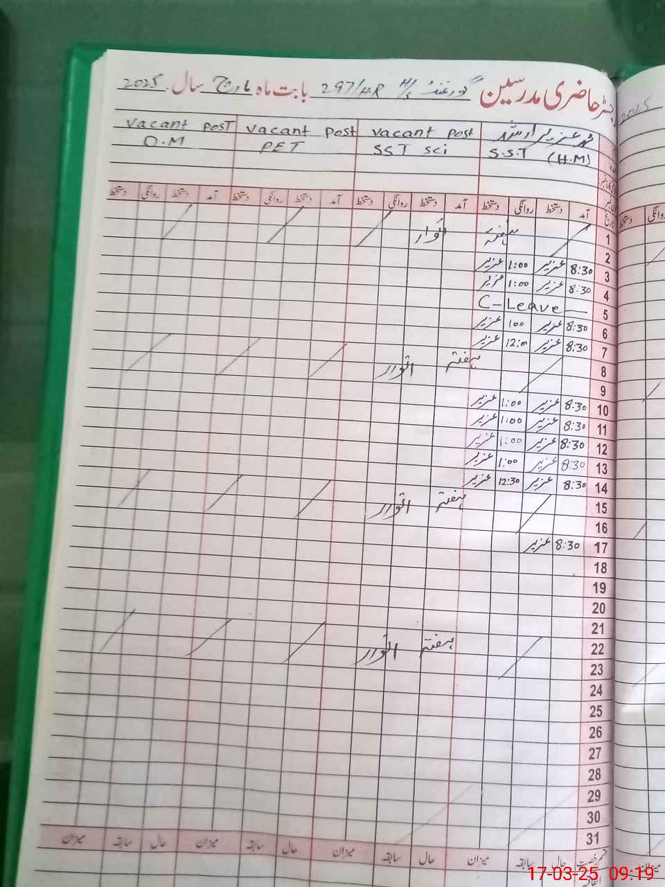 | CNIC | Full Name | Designation | R/C | Absence During Last Calender Month |