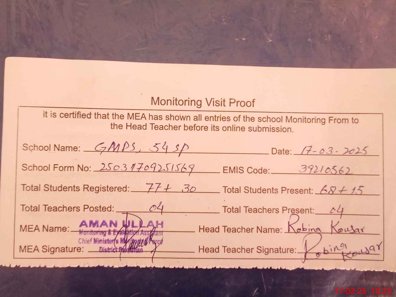 | EMIS Code: 39210562 | Name of School: GMPS 54/SP | |||