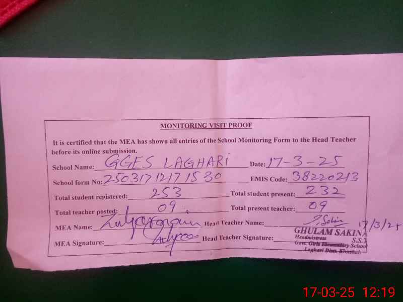 | EMIS Code: 38220213 | Name of School: GGES LAGHARI | |||