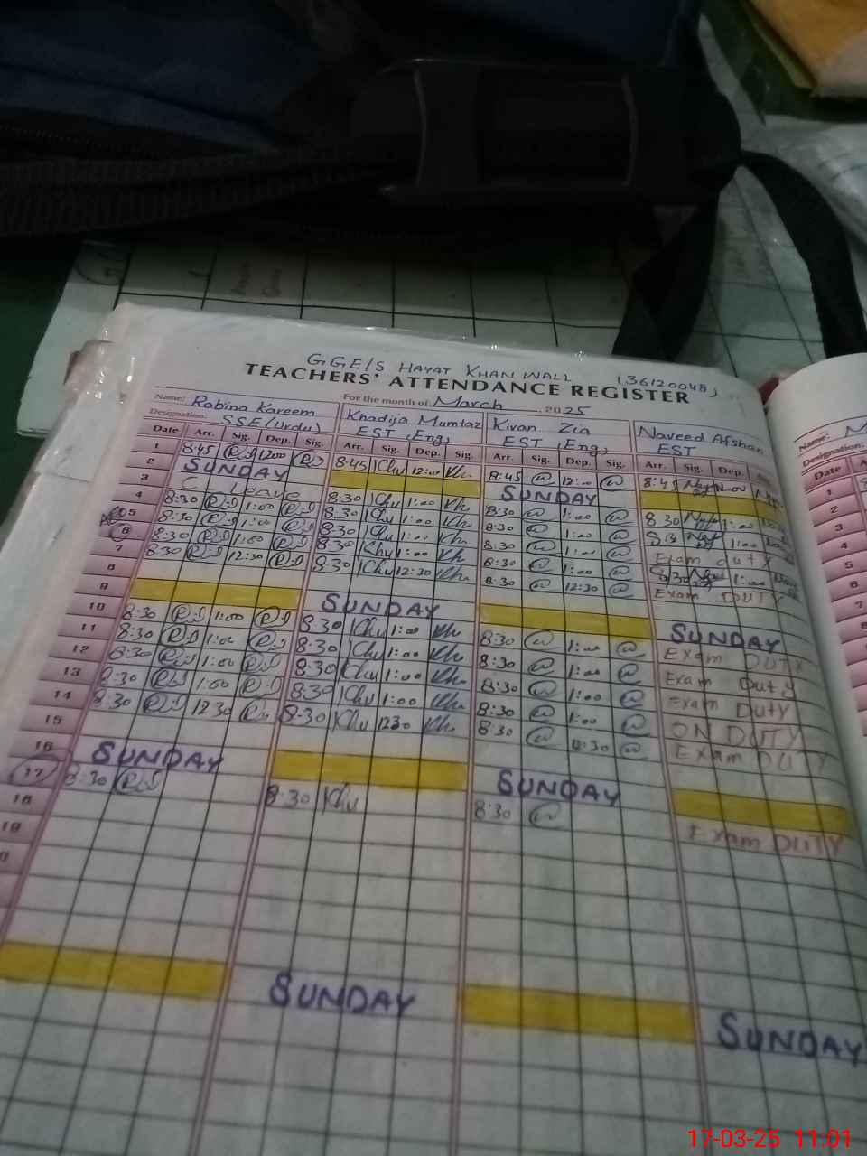 | 36**** | Na**** Af**** | Regular | 2 | 0 | 0 | 0 | 0 | 0 | 0 | 0 | 2 | Exam Duty | |