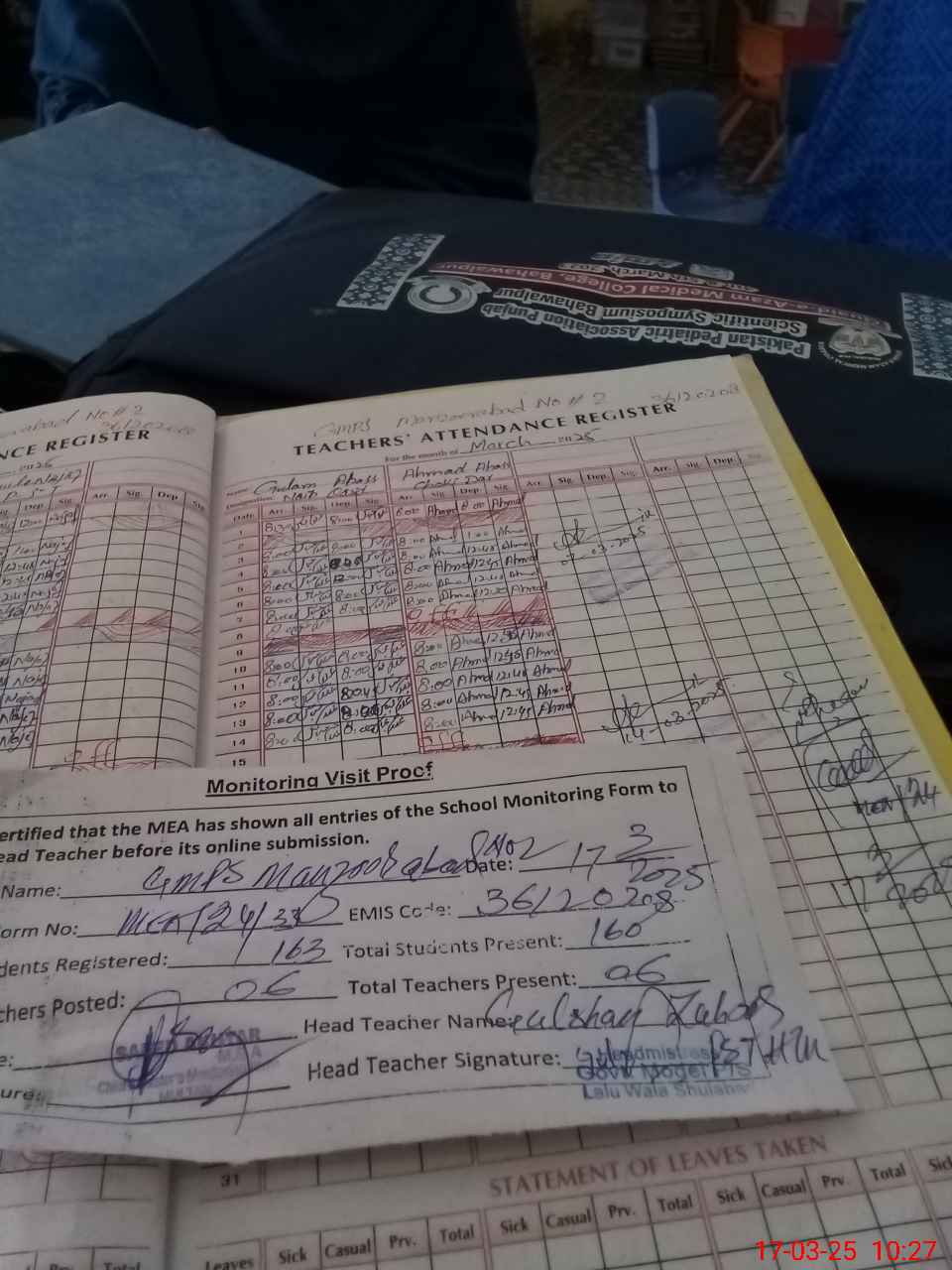 | Attendance Register | Head Teacher | MEA with School | Visit Proof |
