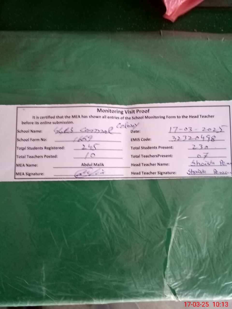 | Certified that this School was Inspected by the Undersigned MEA/DMO Today and the Information Stated Above is as Per Record. | |||||