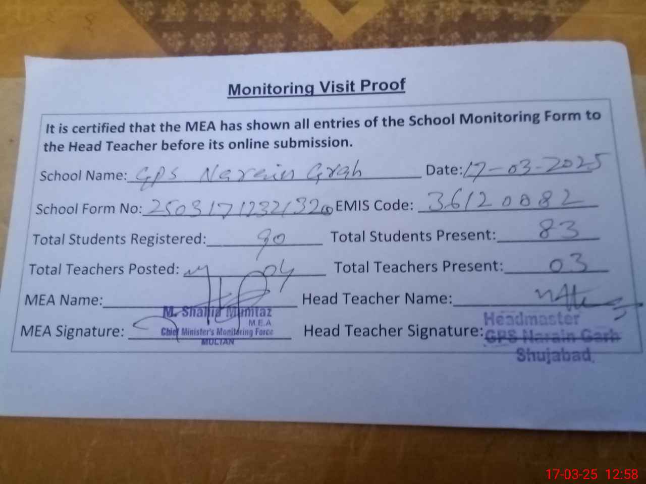 | EMIS Code: 36120082 | Name of School: GPS NARAIN GARH P/O GARDEZPUR SHUJABAD | |||