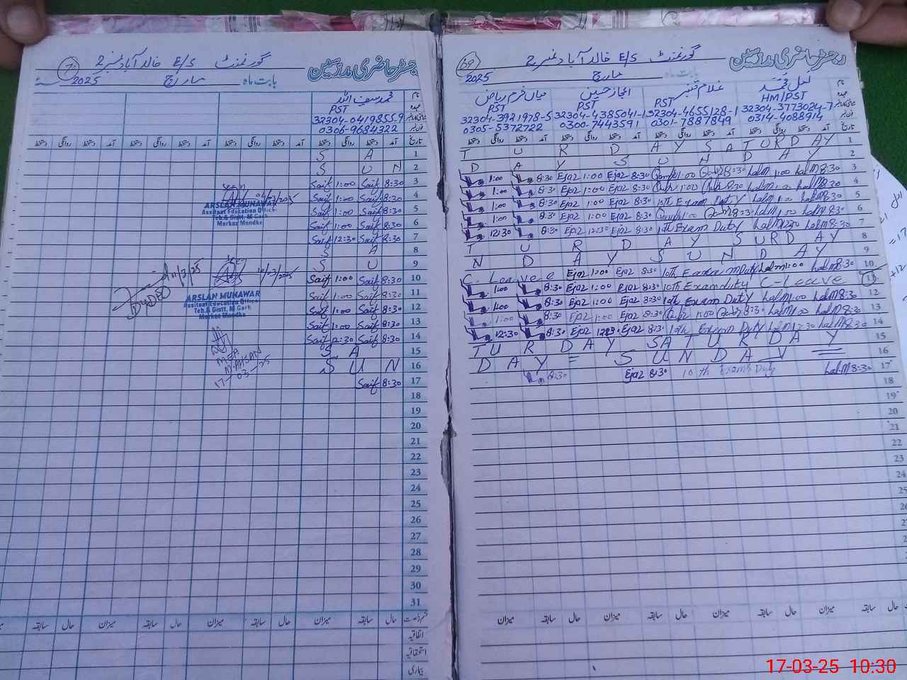 | 32**** | Gh**** Qa**** | PST | Regular | 0 | 0 | 0 | 0 | 0 | 0 | 0 | 0 | 0 | Exam Duty |