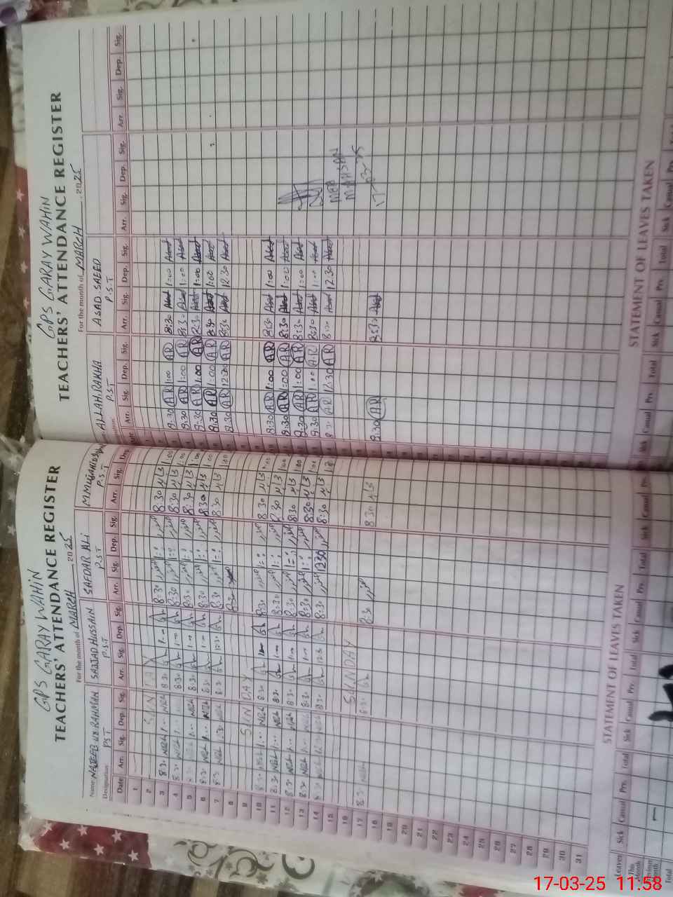 | CNIC | Full Name | Designation | R/C | Absence During Last Calender Month |