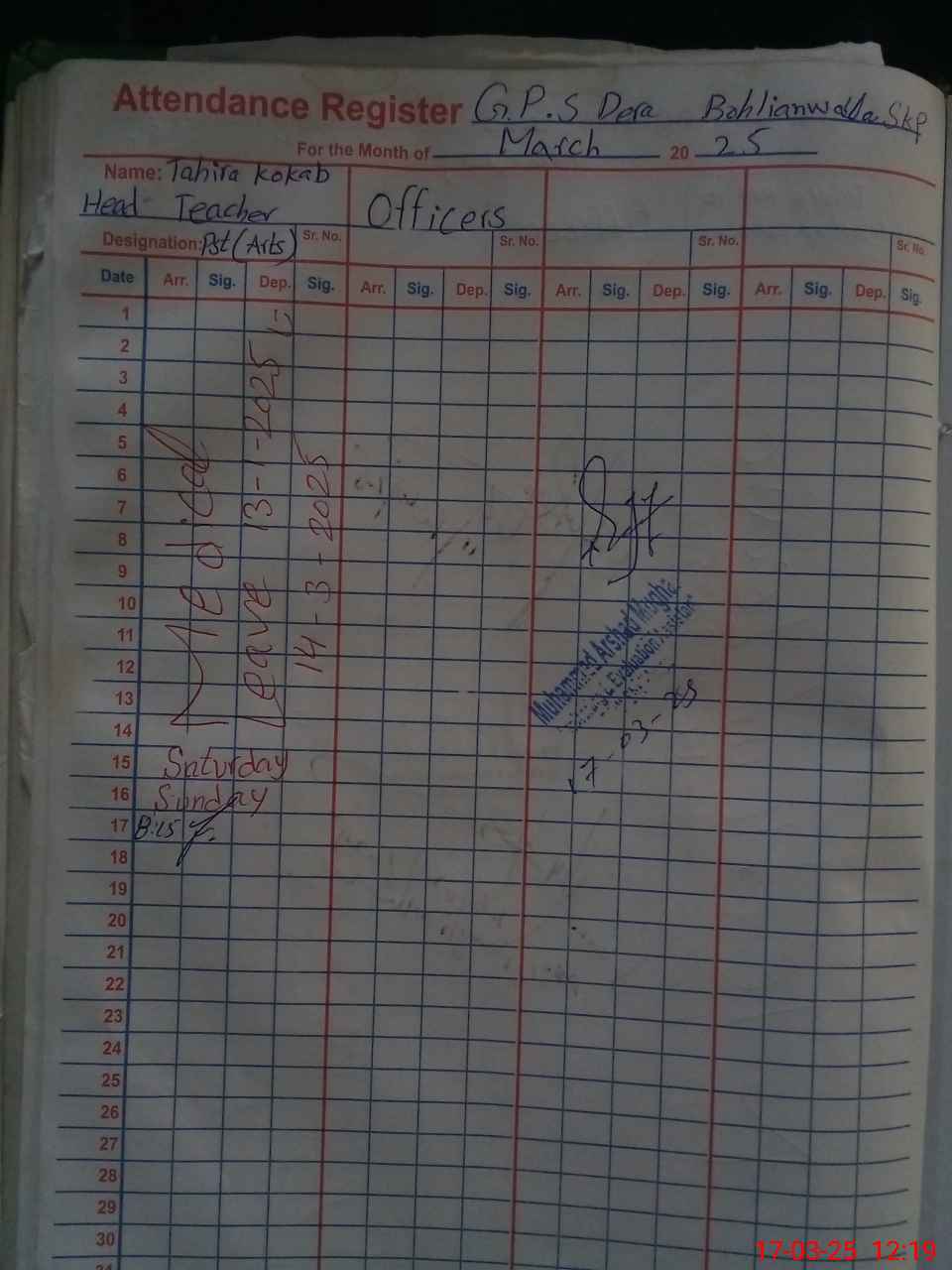 | Name: TA**** KO**** Designation: (School Headmaster's/Headmistress's) PST Phone/Cell Number: 03**** |