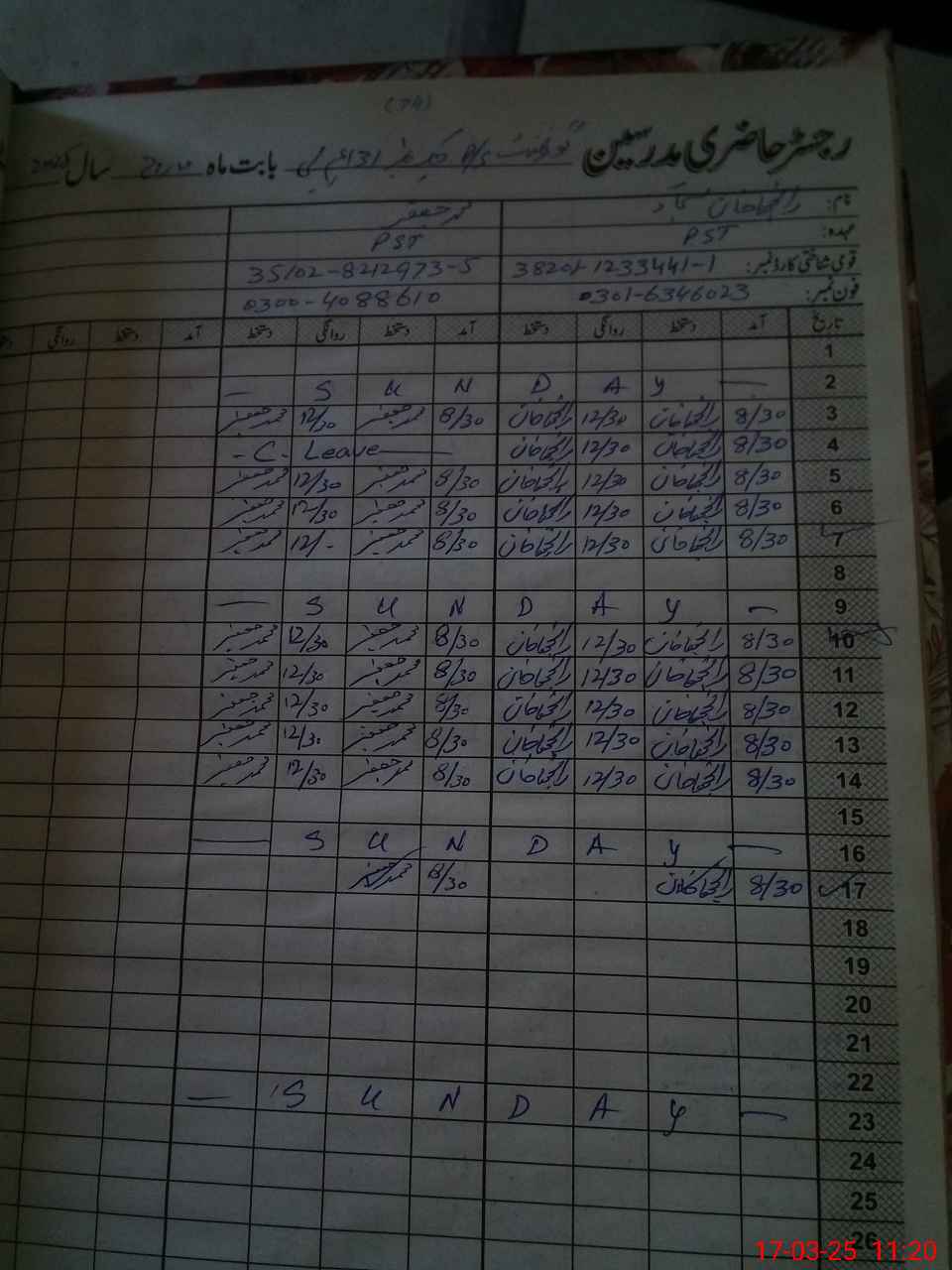 | Name: Ra**** Kh**** Sa**** Designation: (School Headmaster's/Headmistress's) PST Phone/Cell Number: 03**** |