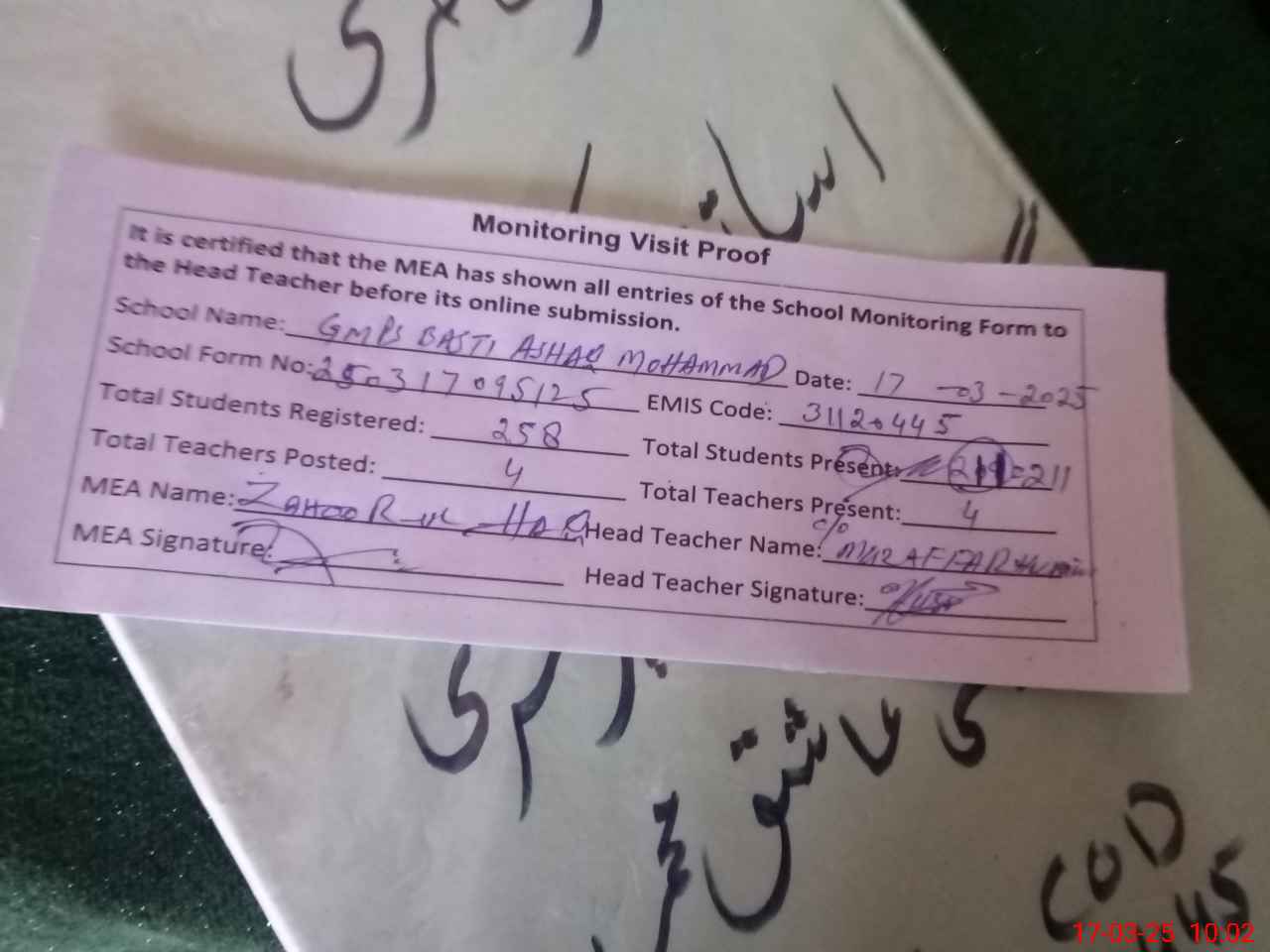 | EMIS Code: 31120445 | Name of School: GMPS BASTI ASHIQ MUHAMMAD | |||