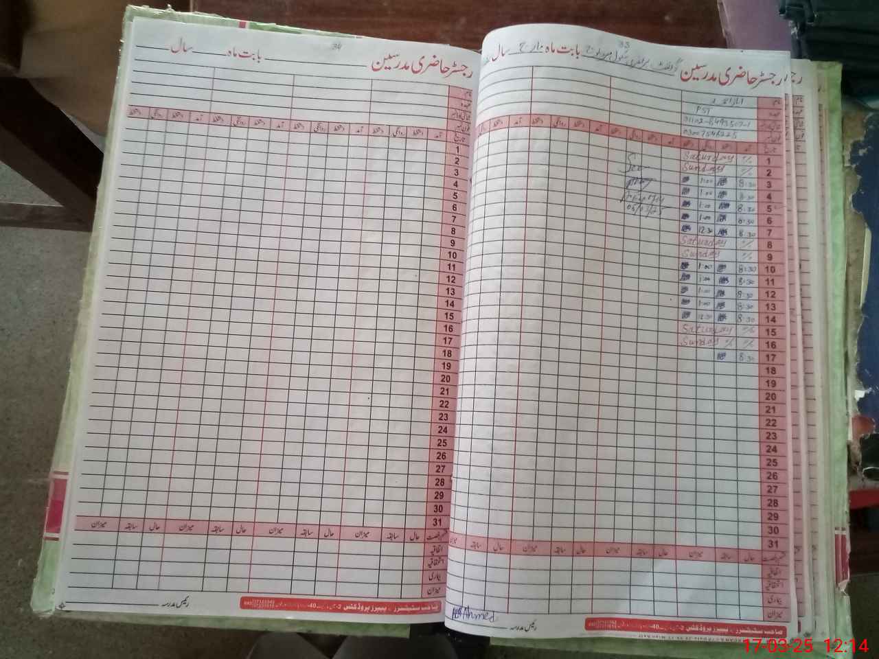| CNIC | Full Name | Designation | R/C | Absence During Last Calender Month |