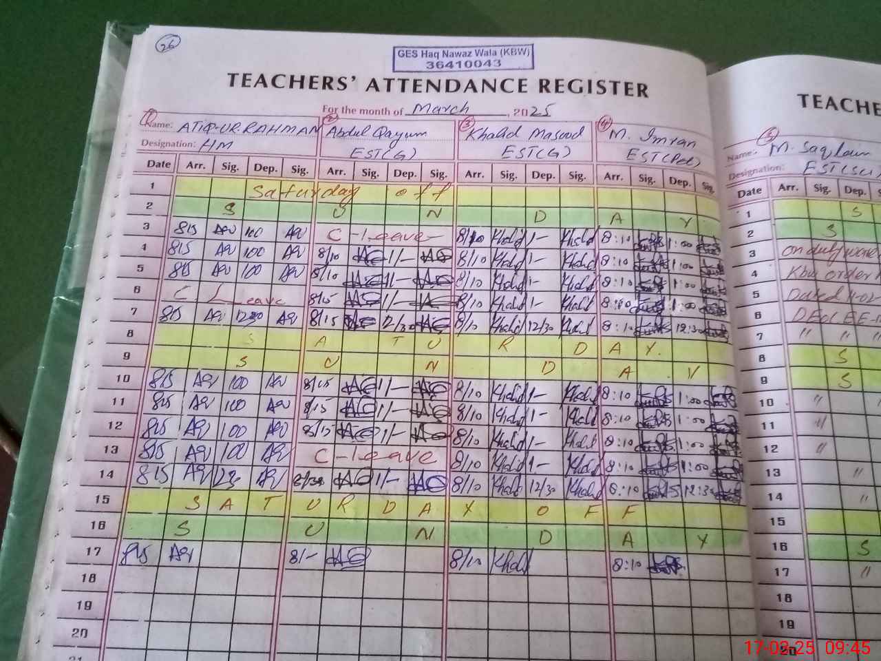| 36**** | Mi**** | PST | Regular | 0 | 0 | 0 | 0 | 0 | 0 | 0 | 0 | 0 | Exam Duty |