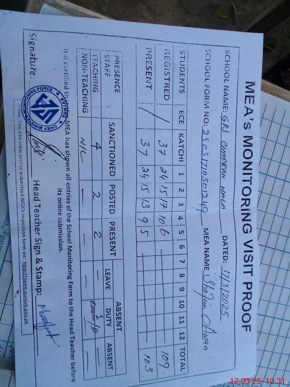| EMIS Code: 36410306 | Name of School: GPS CHAPRAN WALA, P/O SARDAR PUR, NAWAN SHEHR | |||
