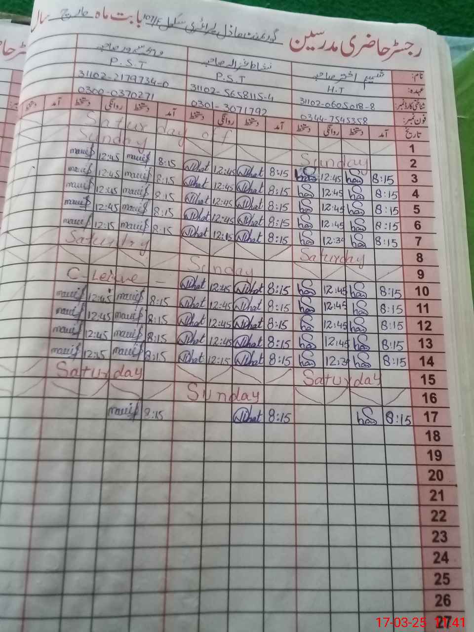 | Name: Sh**** Ak**** Designation: (School Headmaster's/Headmistress's) PST Phone/Cell Number: 03**** |