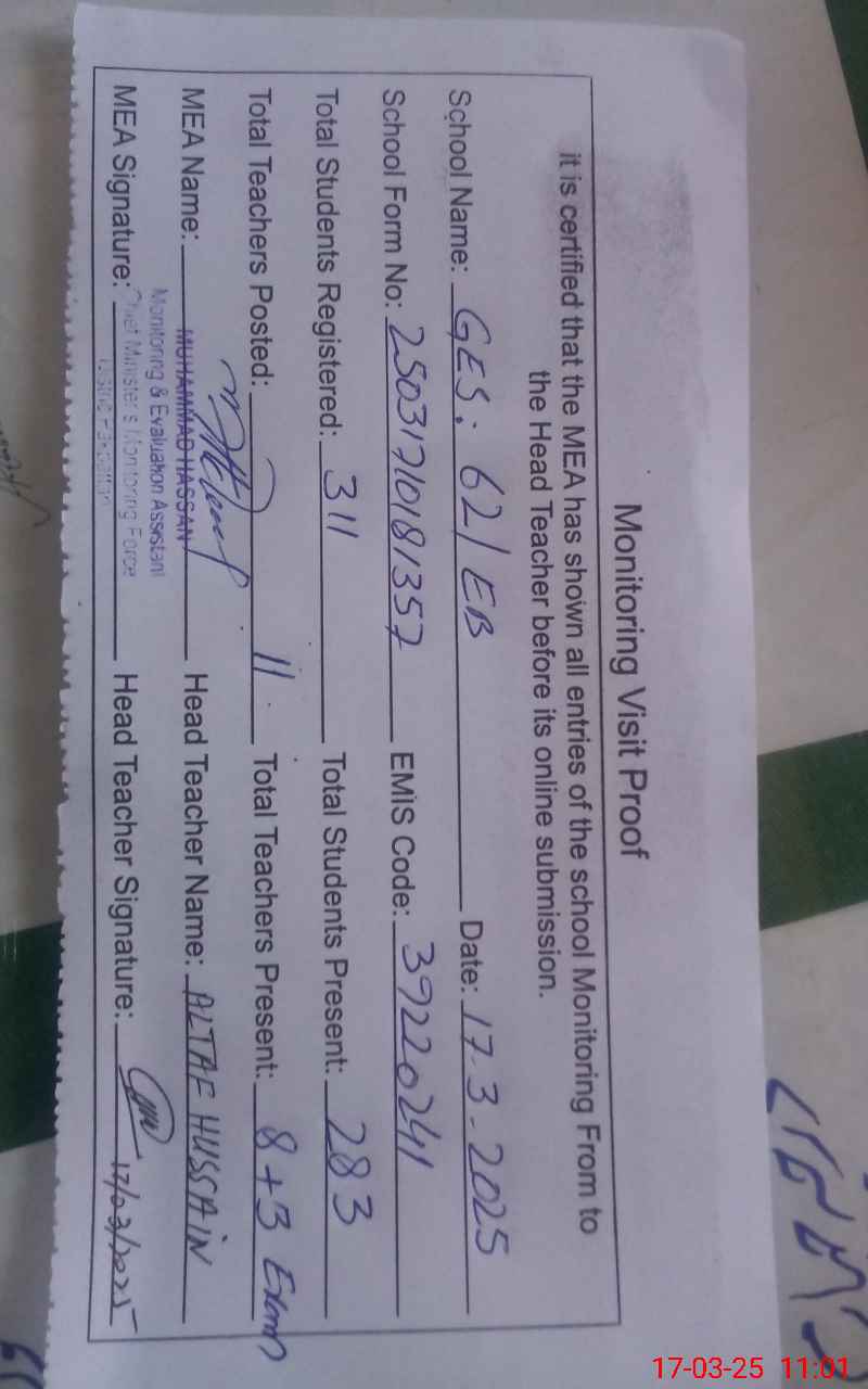 | EMIS Code: 39220241 | Name of School: GES 62 EB | |||