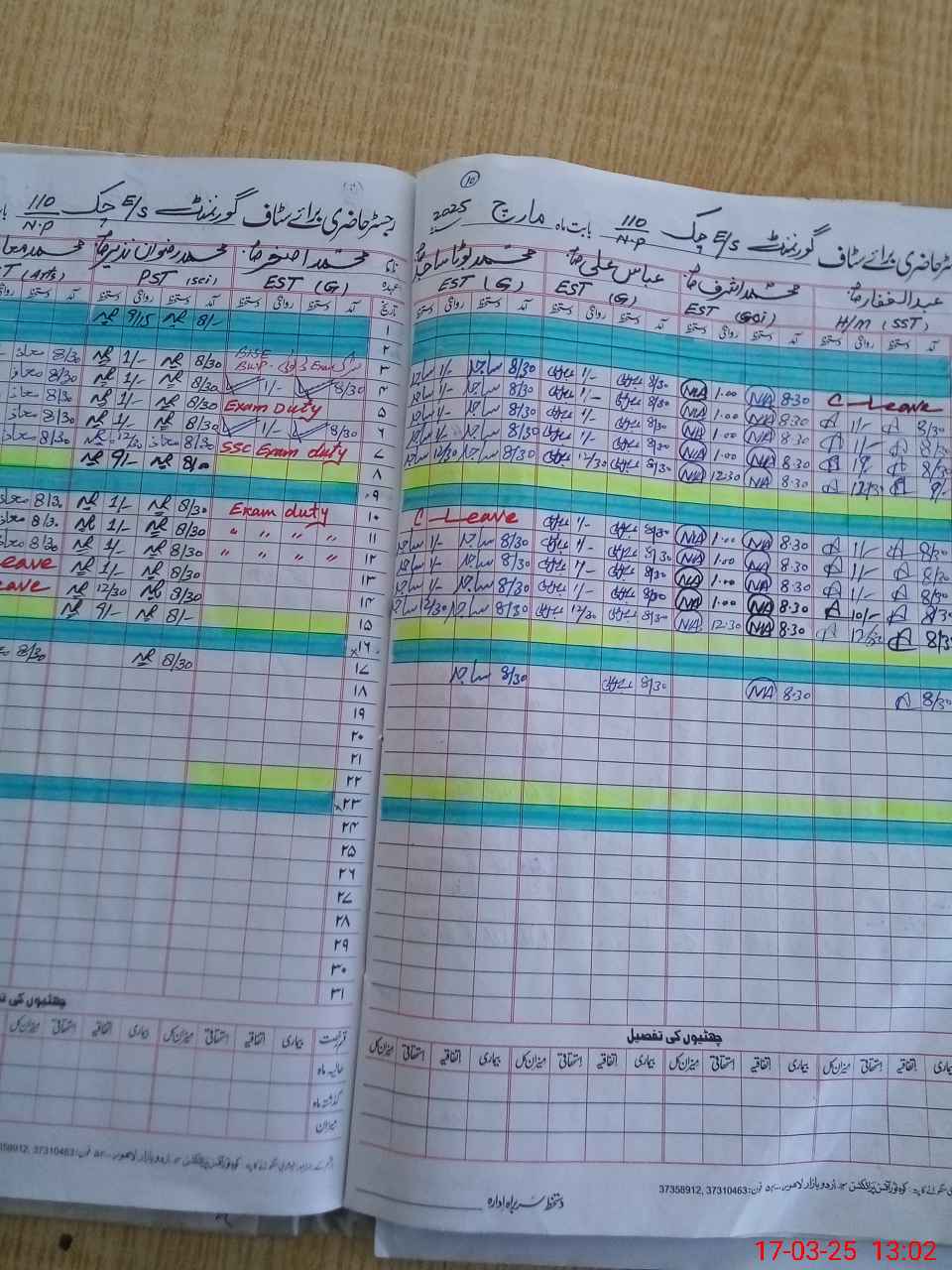 | 31**** | Mu**** As**** | 3 | 1 | 0 | 0 | 0 | 0 | 0 | 0 | 0 | 0 | 0 | Exam Duty |