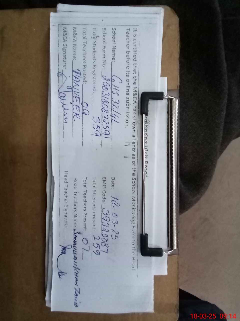 | Name: Sh**** Na**** Qa**** Designation: (School Headmaster's/Headmistress's) HM Phone/Cell Number: 93**** |