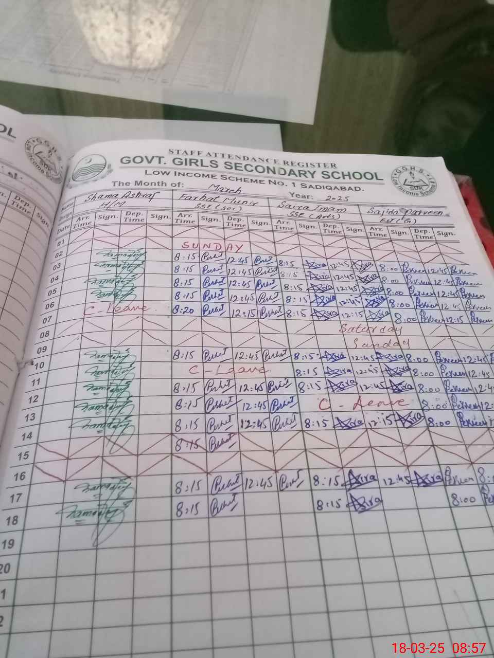 | CNIC | Full Name | Designation | R/C | Absence During Last Calender Month |