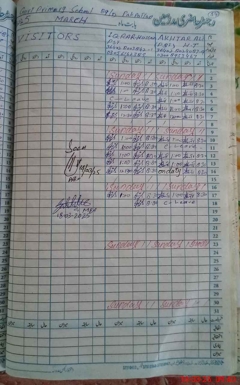 | Name: AK**** AL**** Designation: (School Headmaster's/Headmistress's) PST Phone/Cell Number: 03**** |
