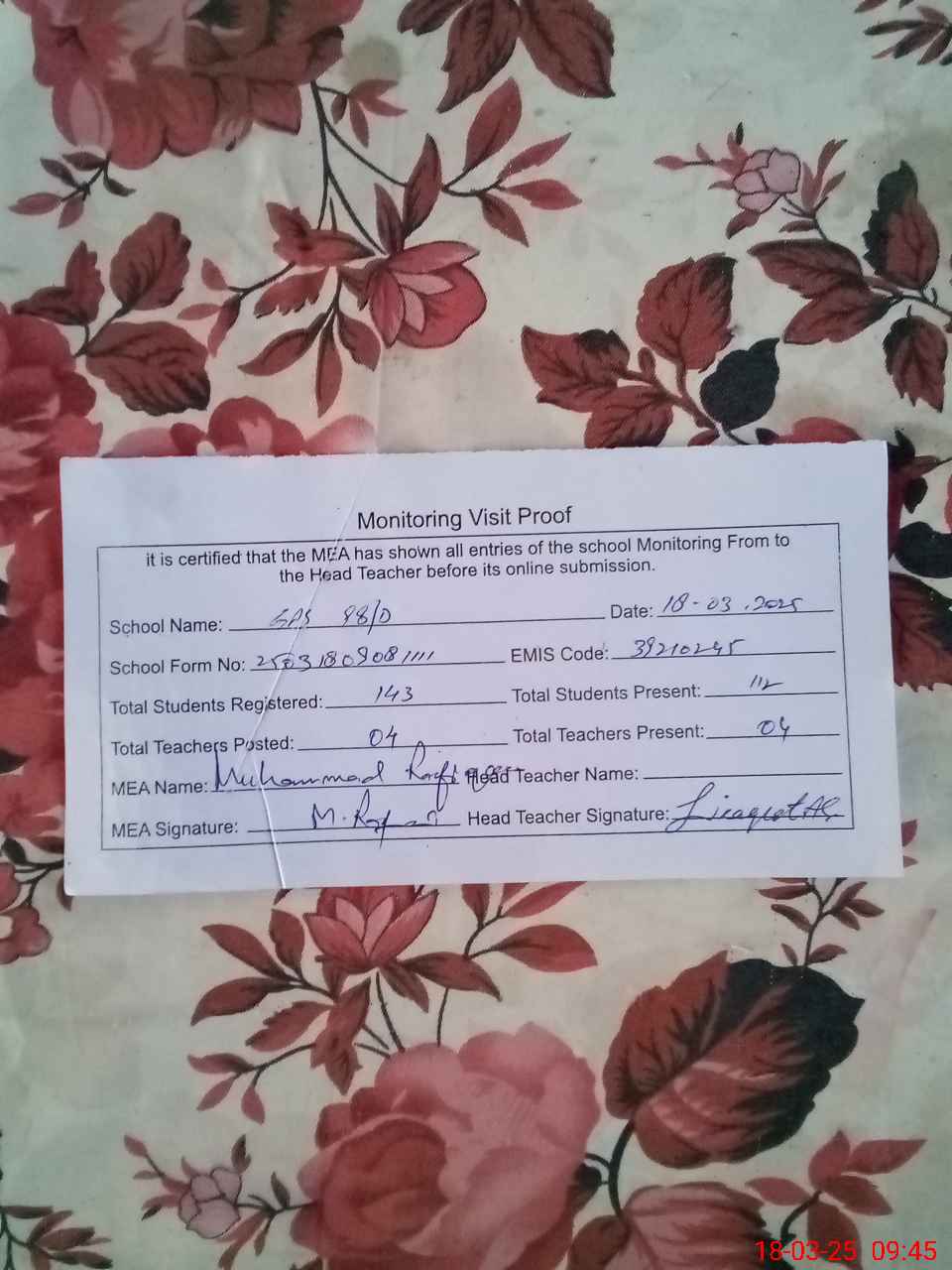 | EMIS Code: 39210245 | Name of School: GPS CHAK NO. 98/D | |||