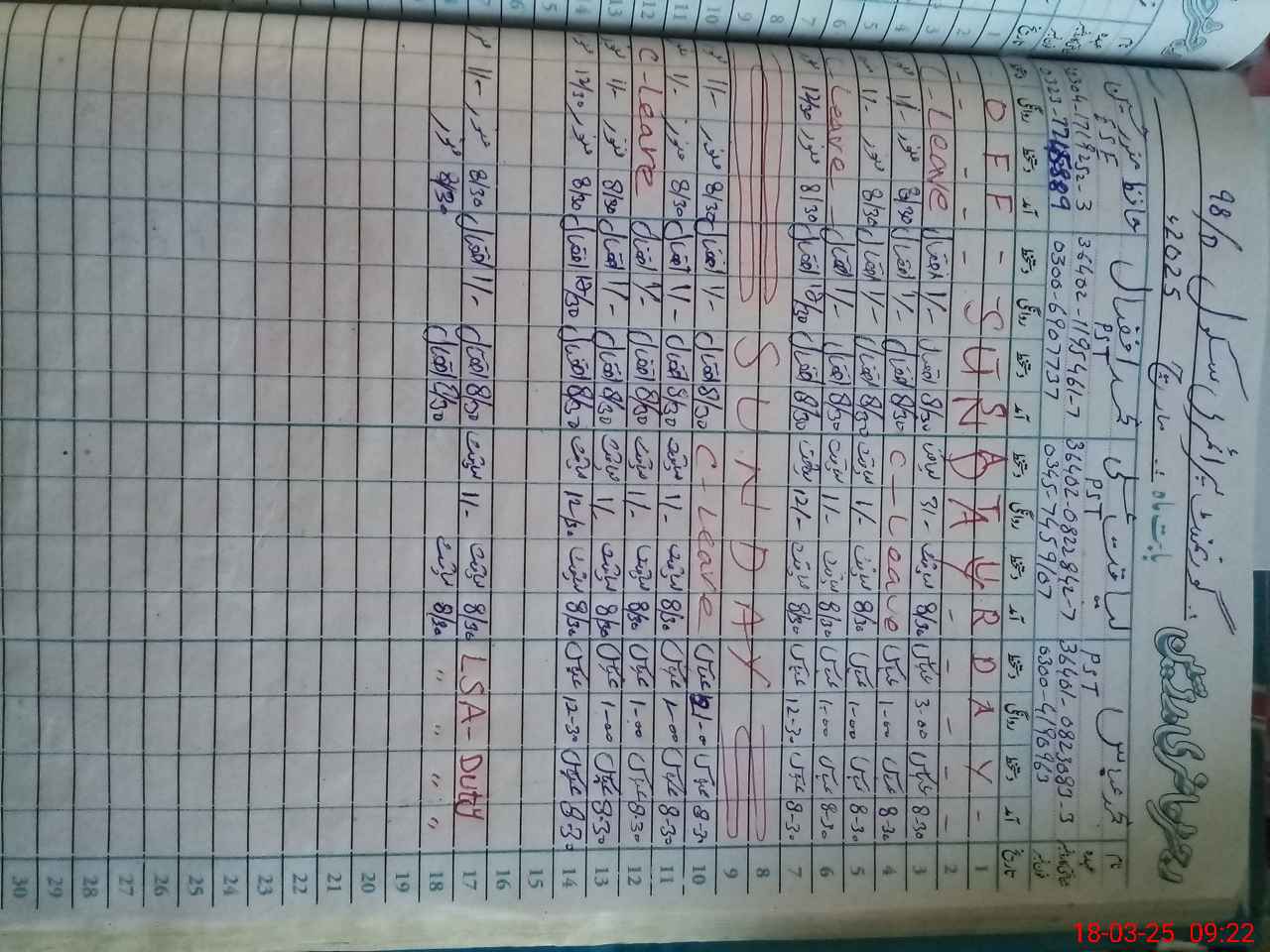 | 36**** | Mu**** Ab**** | 1 | 0 | 2 | 0 | 0 | 0 | 0 | 0 | 0 | 0 | Exam Duty | |