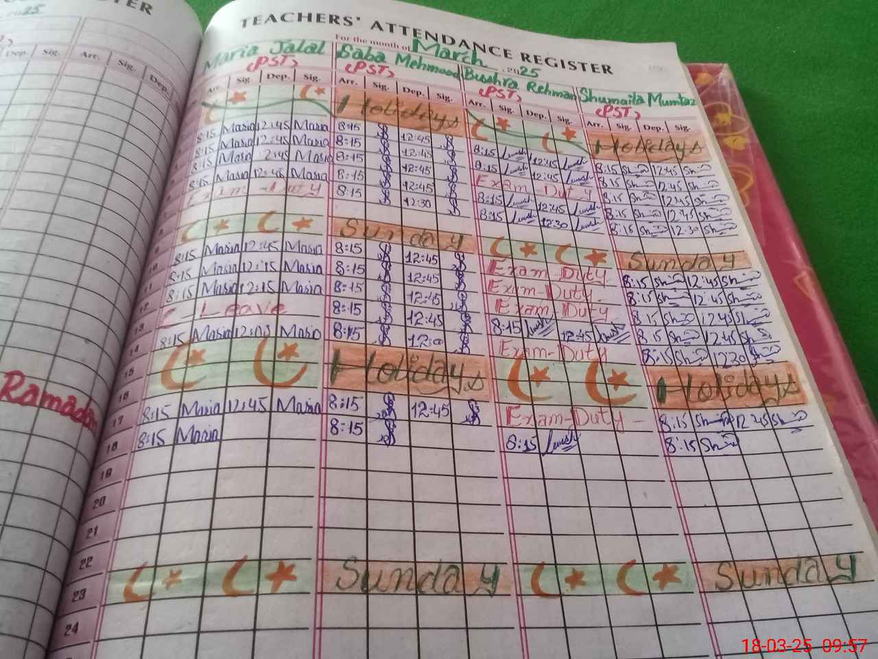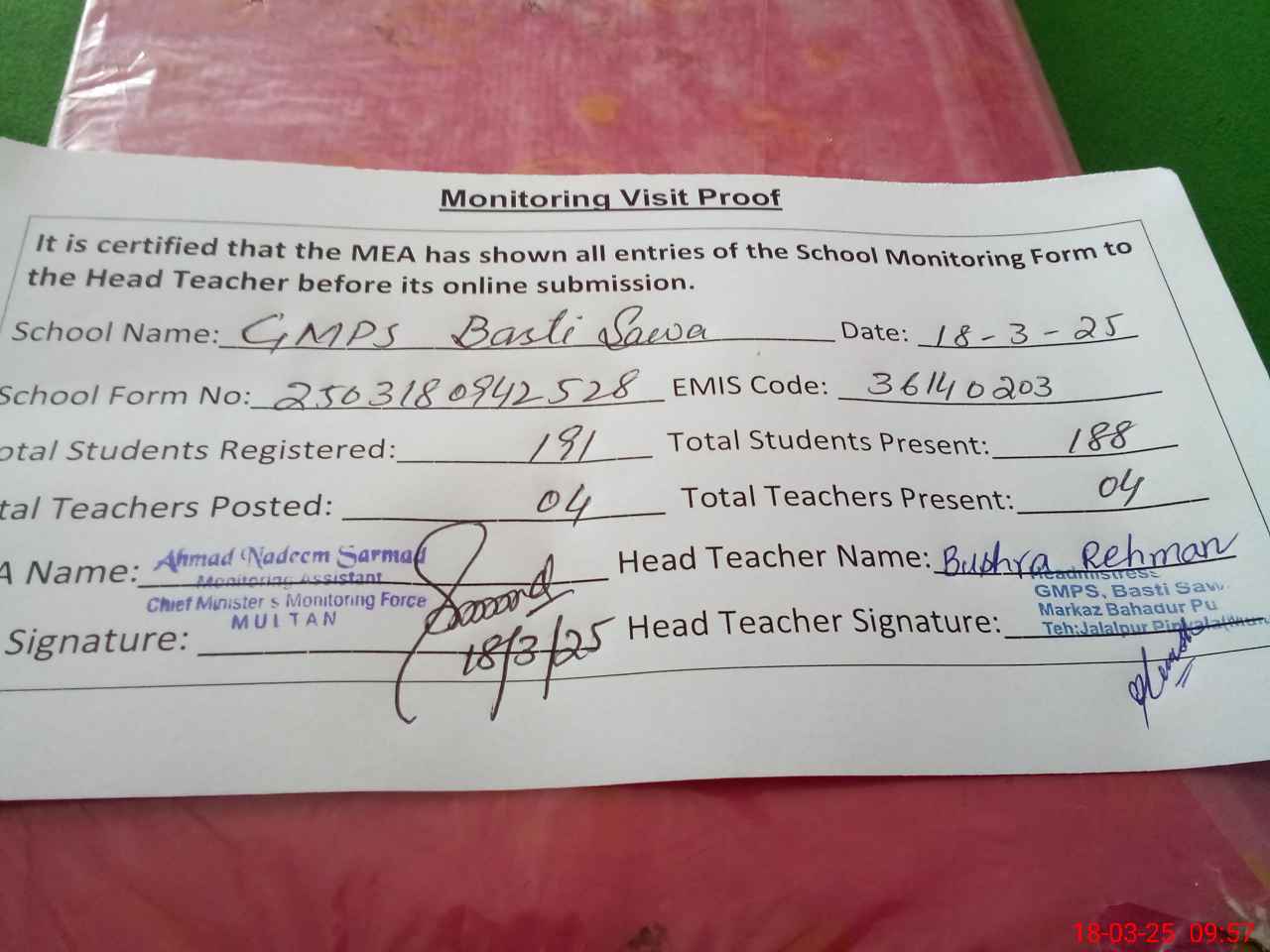 | Attendance Register | Head Teacher | MEA with School | Visit Proof |