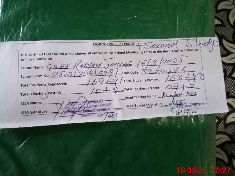 | Attendance Register | Head Teacher | MEA with School | Visit Proof |
