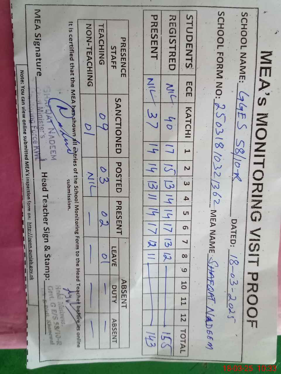 | EMIS Code: 36420404 | Name of School: GGES 58/10-R, KHANEWAL | |||