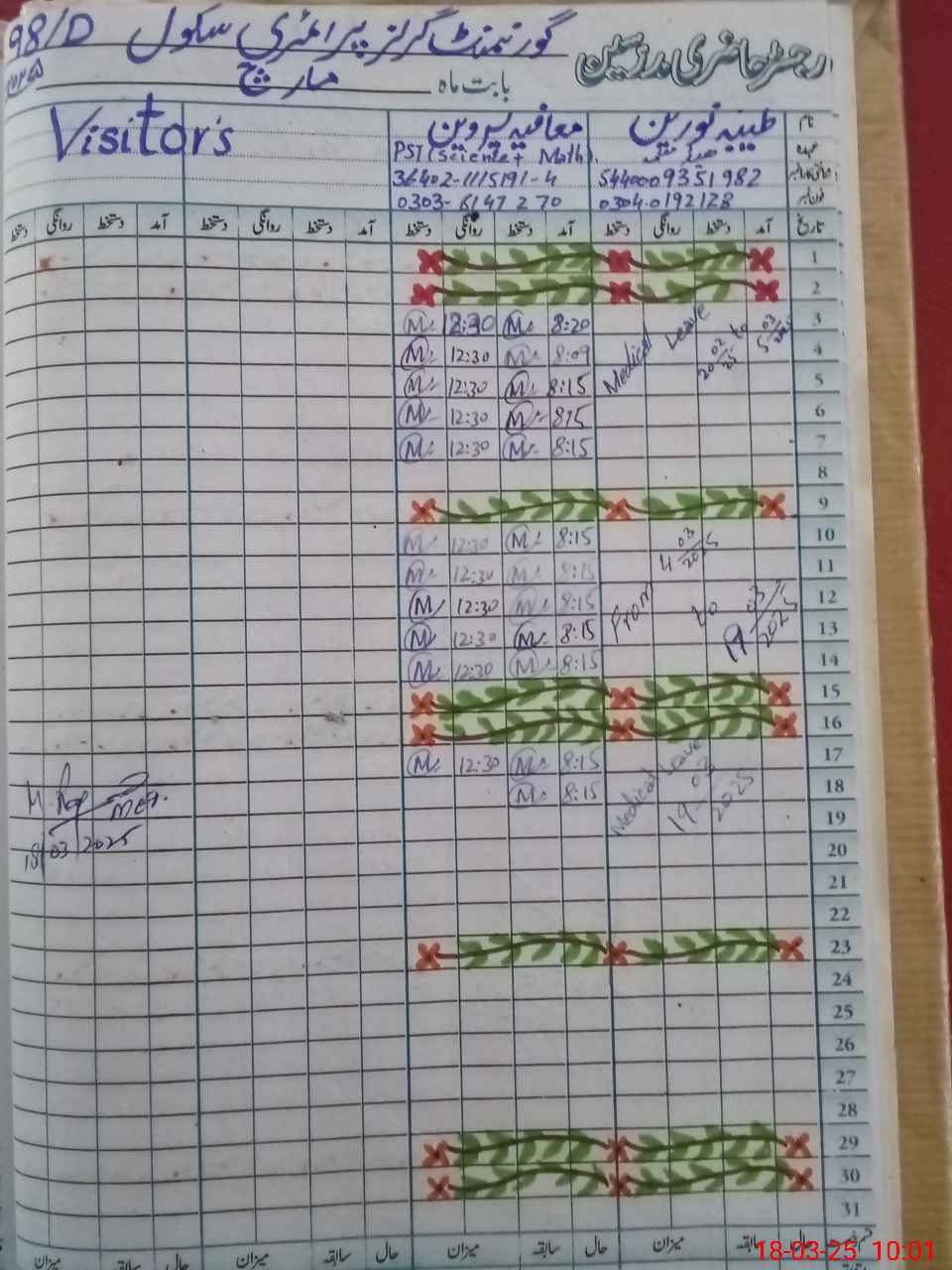 | Name: Mu**** Pe**** Designation: (School Headmaster's/Headmistress's) PST Phone/Cell Number: 03**** |