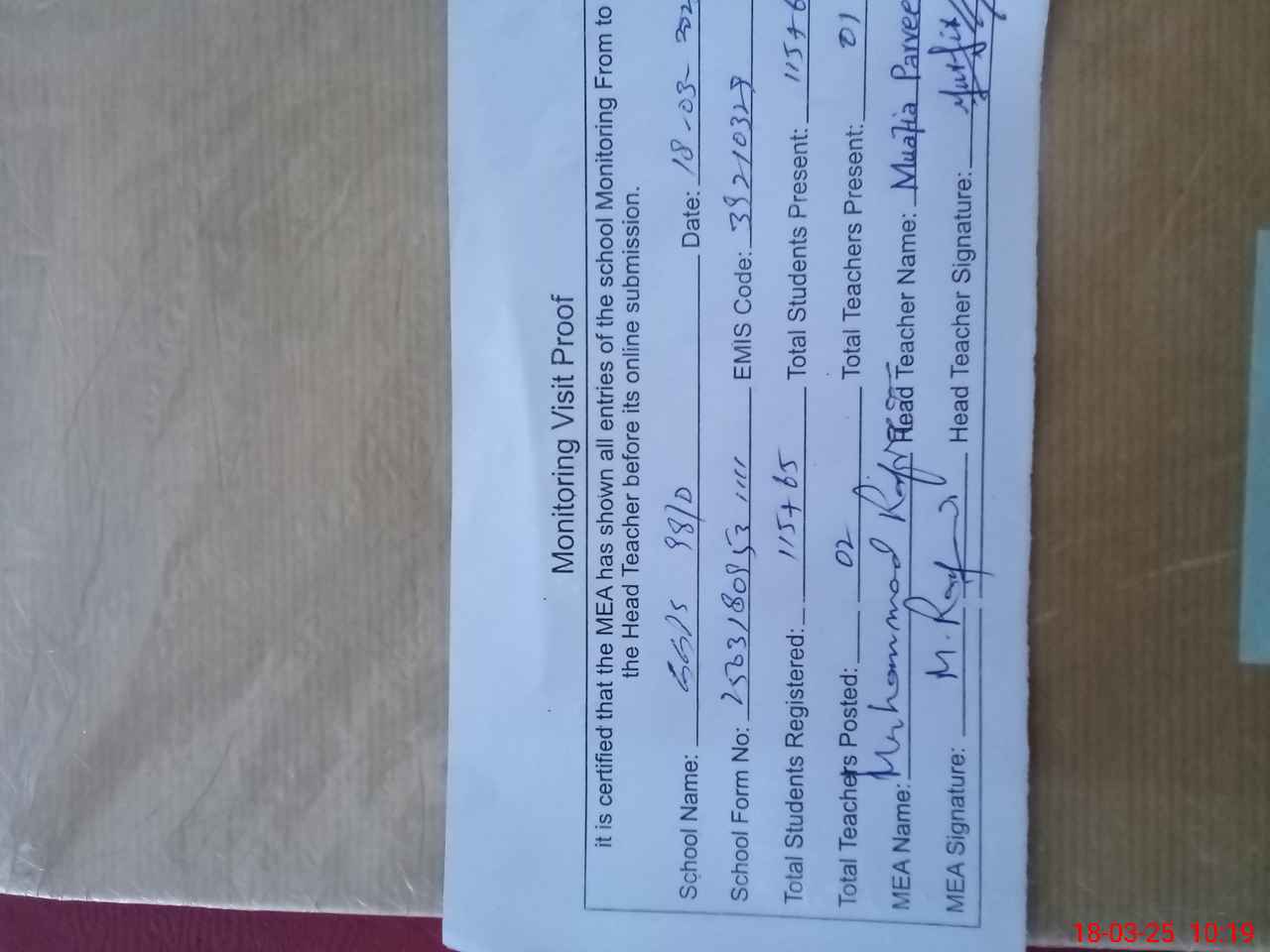 | Certified that this School was Inspected by the Undersigned MEA/DMO Today and the Information Stated Above is as Per Record. | |||||