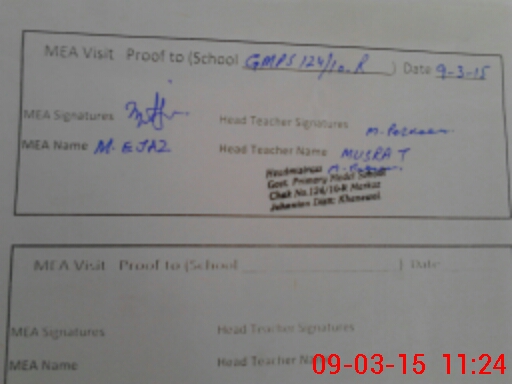 | Attendance Register | Head Teacher | MEA with School | Visit Proof |