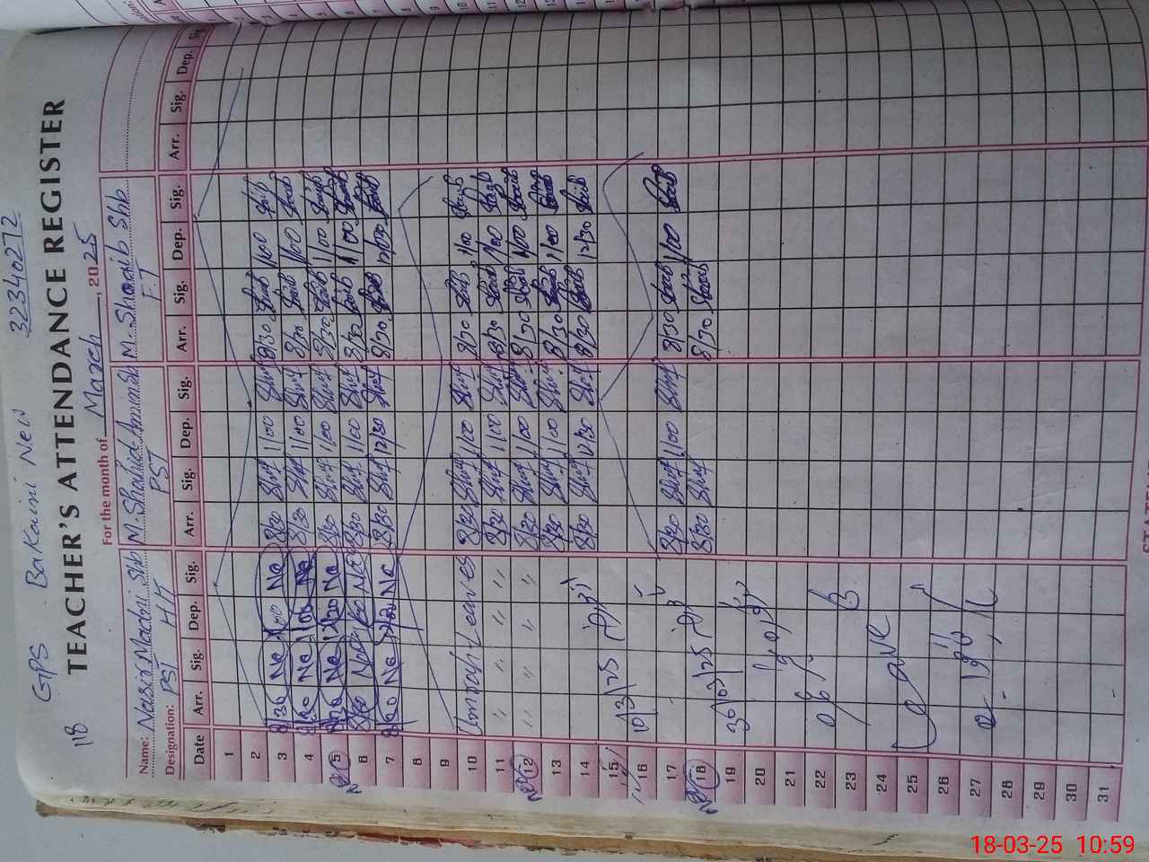 | CNIC | Full Name | Designation | R/C | Absence During Last Calender Month |