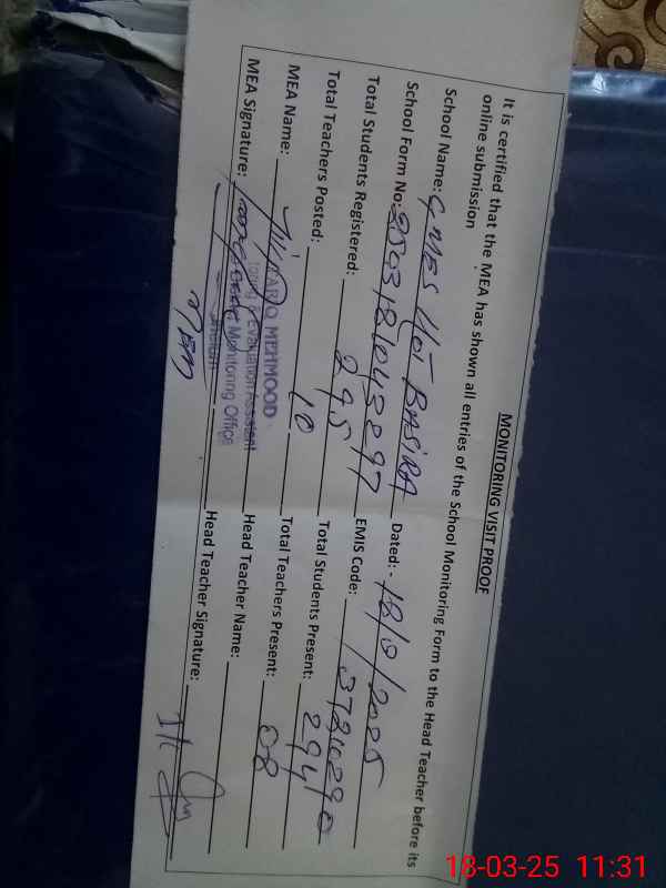 | EMIS Code: 37210290 | Name of School: GMES KOT BASIRA | |||