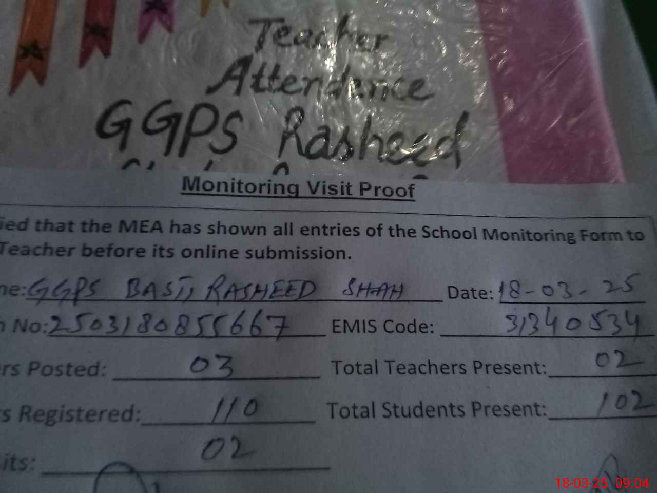 | EMIS Code: 31340534 | Name of School: GGPS BASTI RASHID SHAH | |||