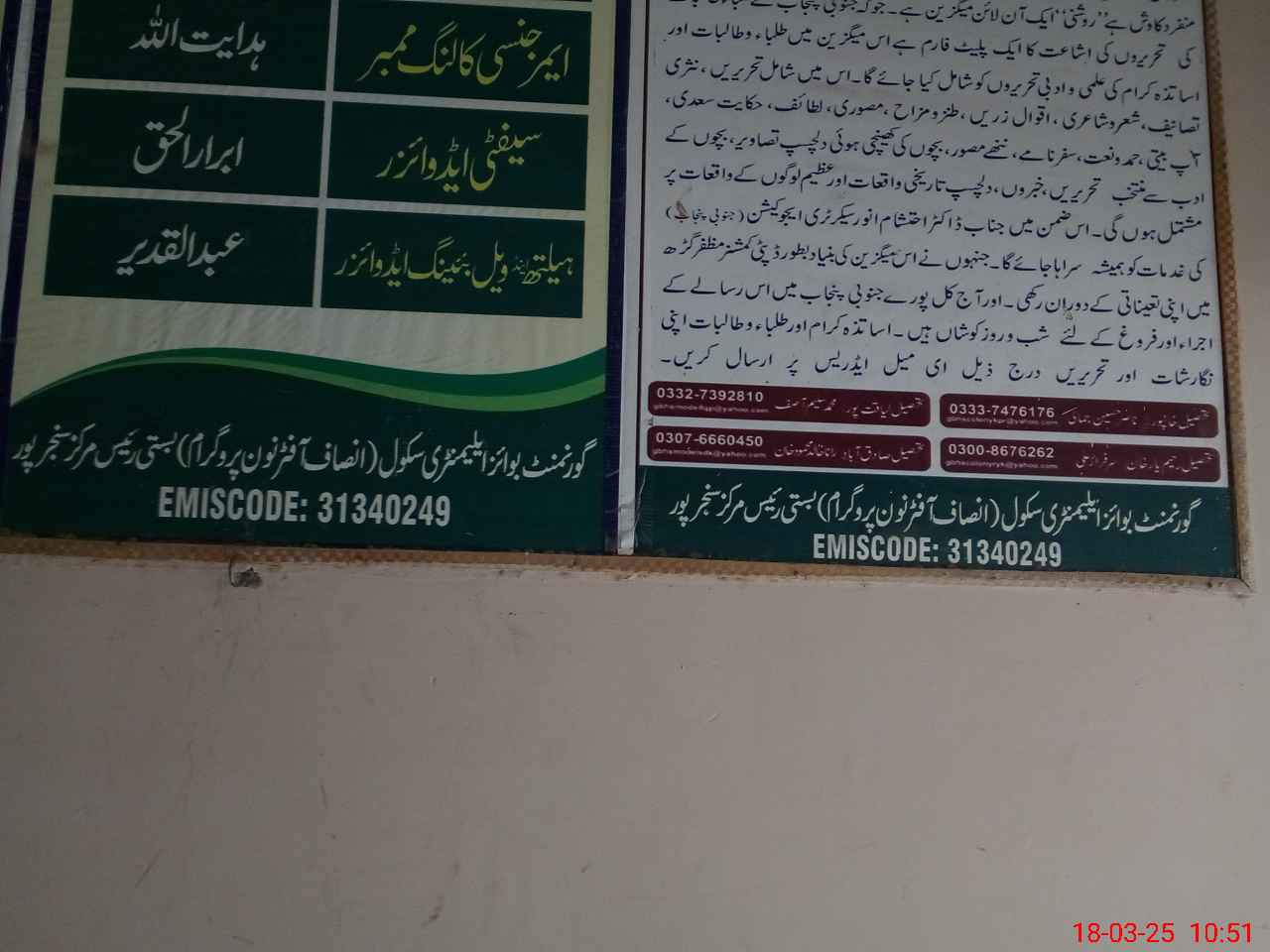 | District: RAHIMYAR KHAN | Tehsil: SADIQABAD | Markaz: SANJAR PUR - MALE | Level: Primary | |