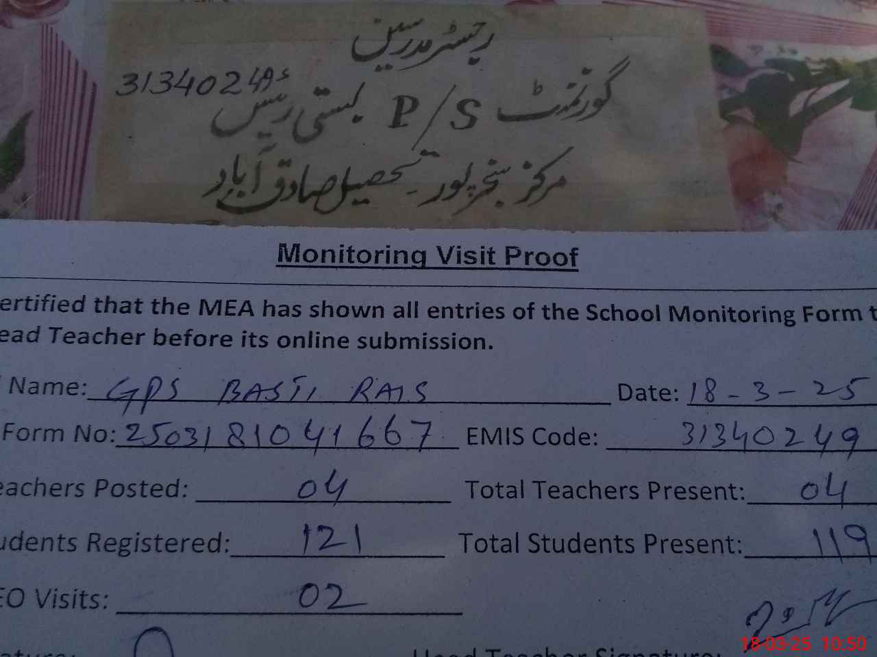 | EMIS Code: 31340249 | Name of School: GPS BASTI RAIS | |||
