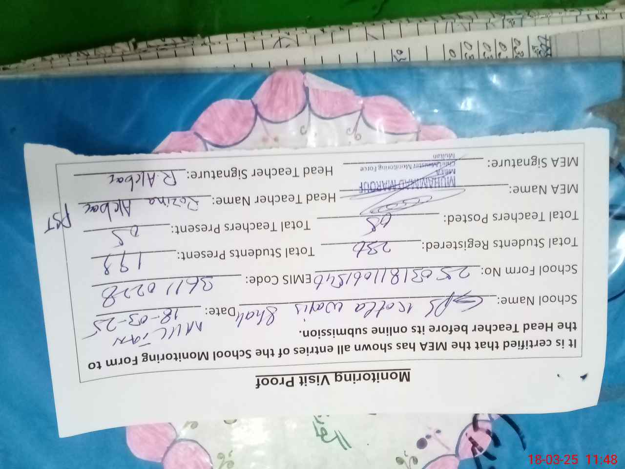 | Certified that this School was Inspected by the Undersigned MEA/DMO Today and the Information Stated Above is as Per Record. | |||||