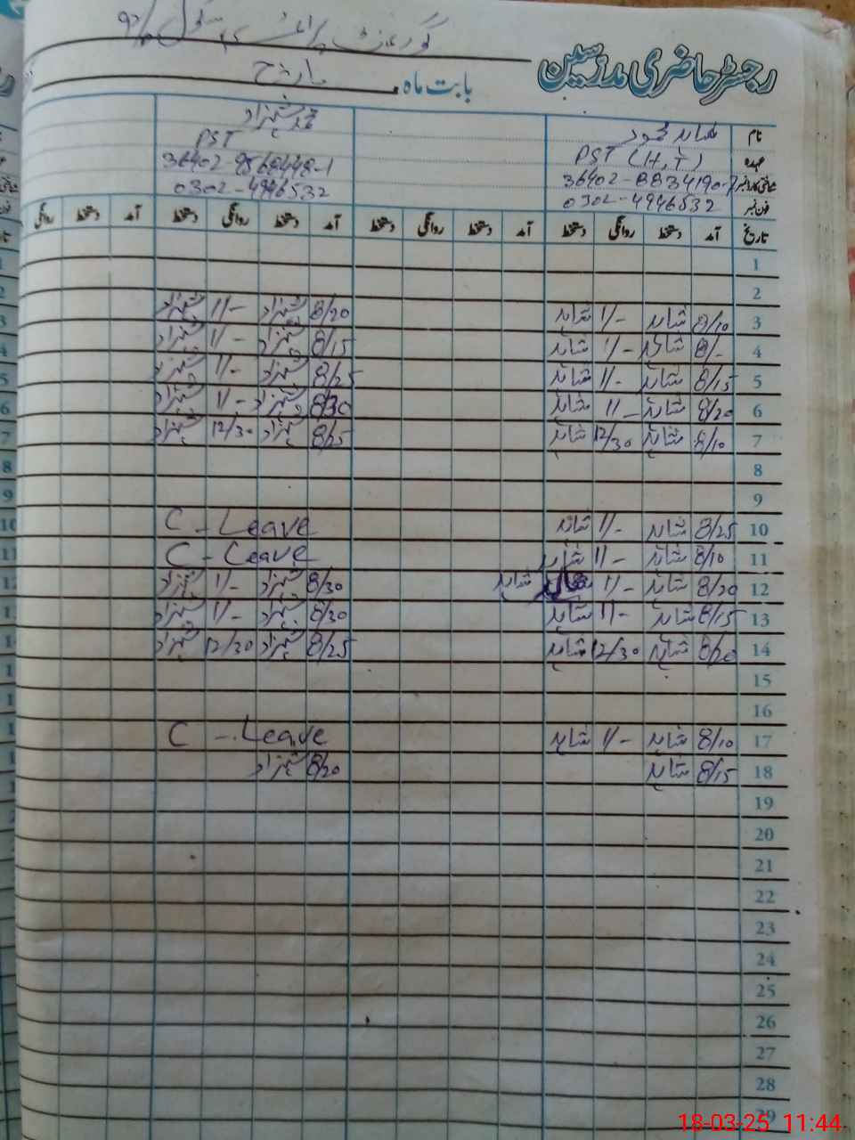 | Name: SH**** ME**** Designation: (School Headmaster's/Headmistress's) PST Phone/Cell Number: 03**** |