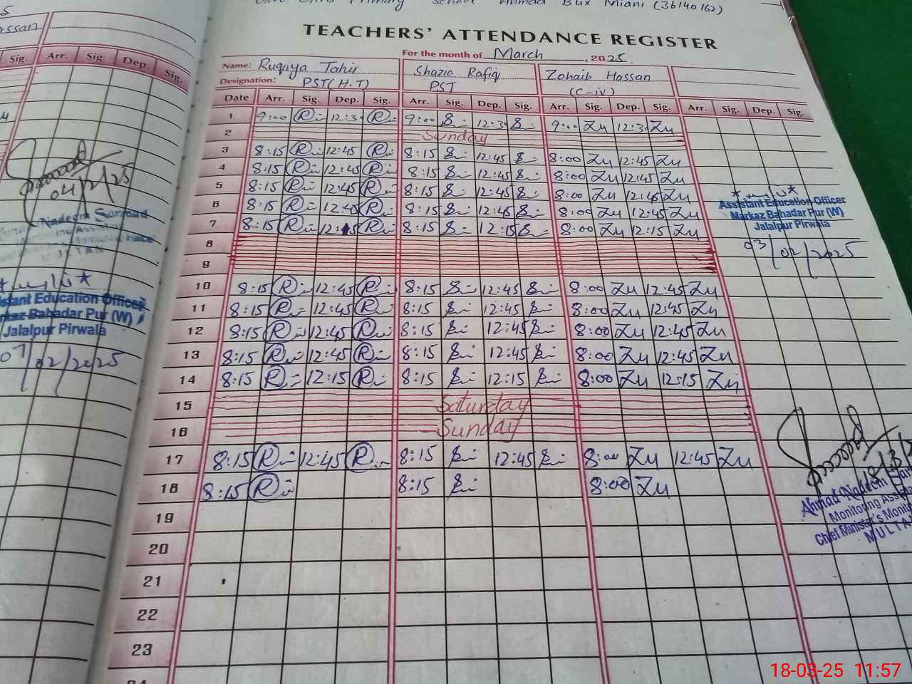 | Name: Ru**** Ta**** Designation: (School Headmaster's/Headmistress's) PST/PTC/JV Phone/Cell Number: 03**** |